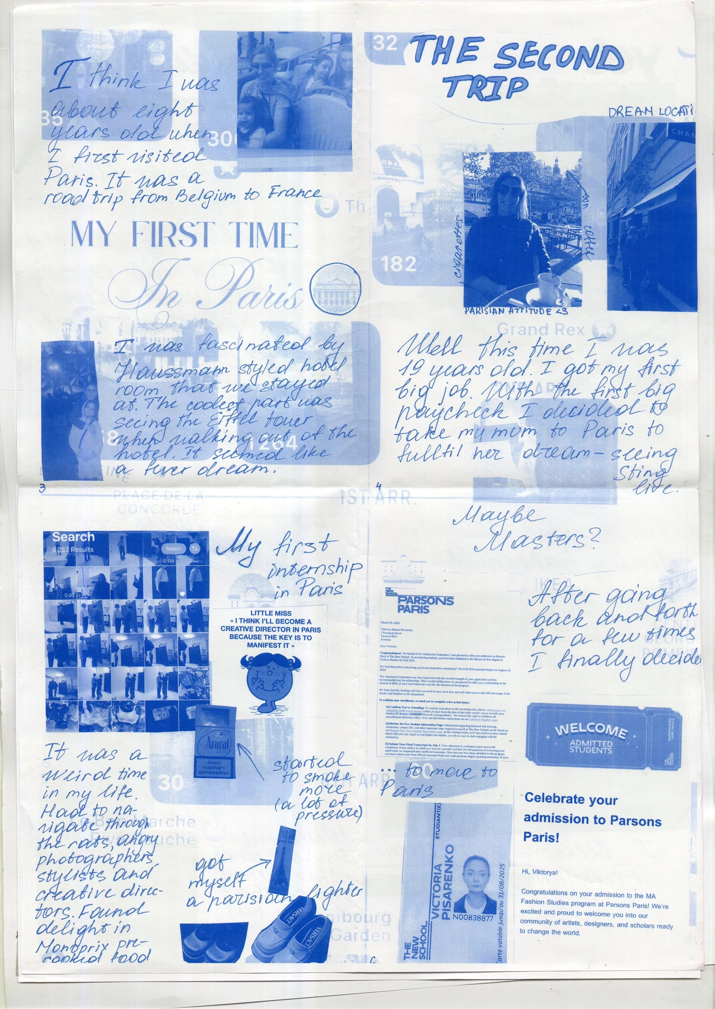 As a guest lecturer for the Masterβs in Fashion Studies & Communications program at Parsons Paris, I led an immersive workshop on independent publishing and creative storytelling. Students were challenged to step away from their screens and embrace the raw, tactile nature of zine-makingβexperimenting with cut-and-paste aesthetics, collage, and hand-assembled layouts. This hands-on approach encouraged spontaneity, individuality, and a deeper connection to the DIY spirit of print media. Selected works from the workshop will be published in MERDE Magazine, spotlighting the next generation of editorial disruptors.